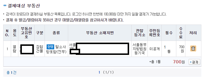 등기부등본은 열람 수수료와 발급 수수료에 차이가 있어요. 그냥 내용 확인만 하는 열람 수수료는 700원이고 발급수수료는 1000원입니다. 열람 화면에서도 등기부등본 출력이 가능한데요, 다만 그렇게 출력한 등기부등본은 법적인 효력을 인정받을 수 없습니다.