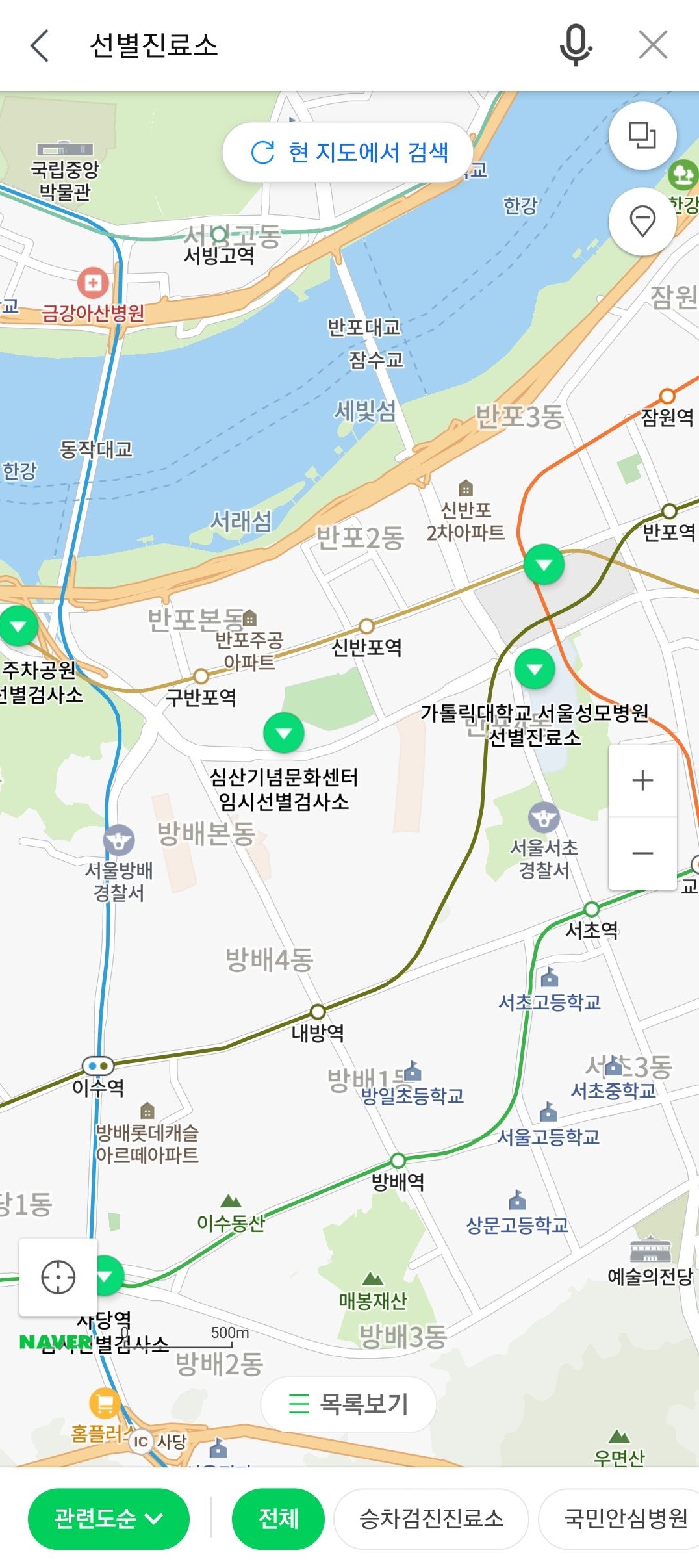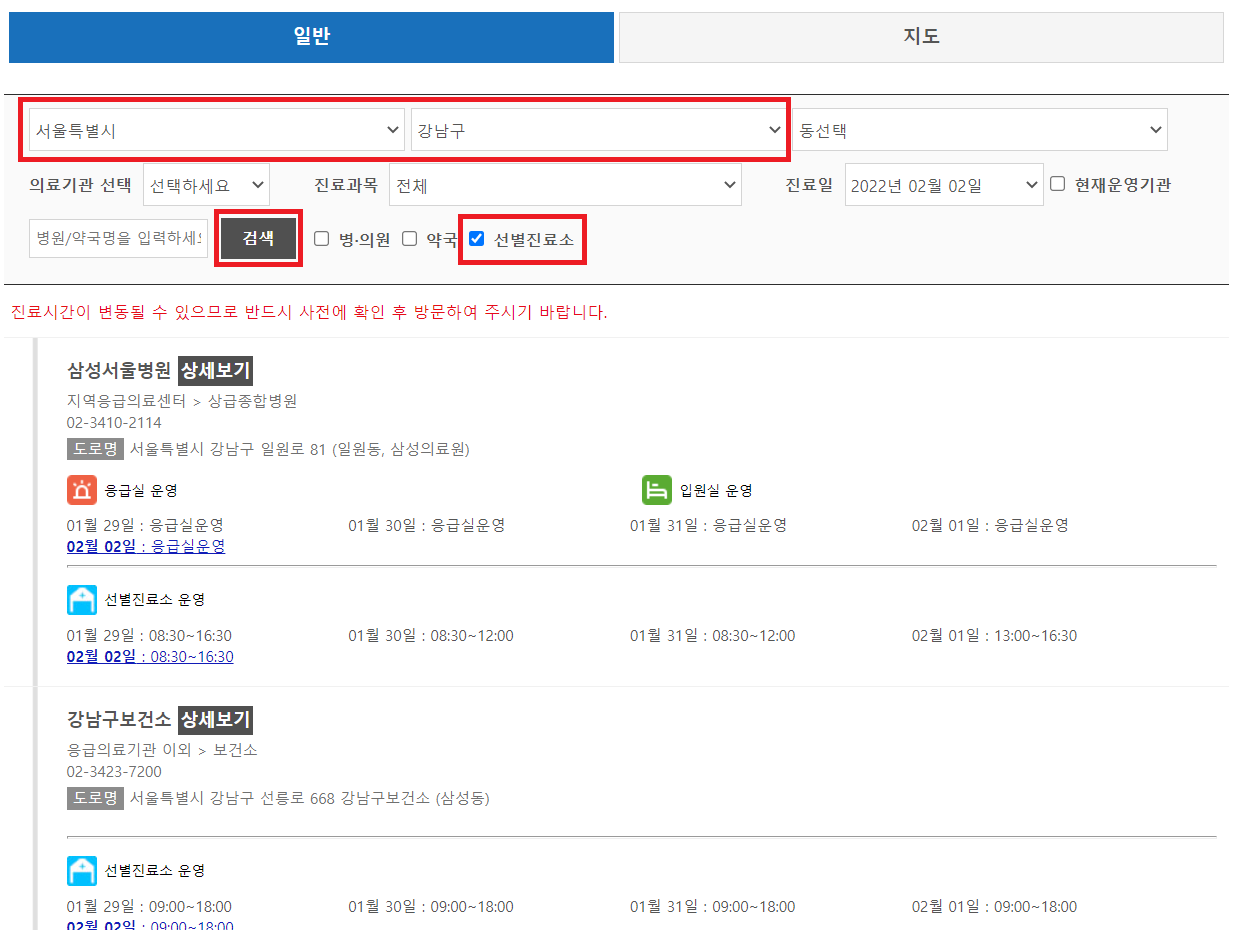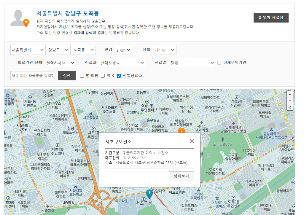 <선별진료소 검색>