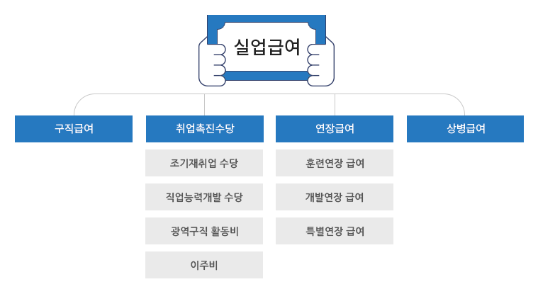 - 특별연장급여 : 실업급증으로 인해 재취업이 특히 어렵다고 인정되는 경우 연장하여 받을 수 있는 급여