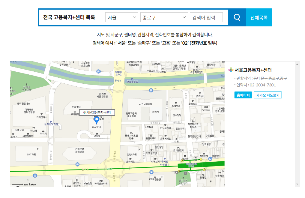 포털사이트에 고용센터 라고 검색을 하시면 고용복지플러스센터 사이트가 최상단에 나오게 될거에요. 해당 사이트에 접속하시면 바로 첫페이지에 전국의 고용복지플러스센터를 검색할 수 있는 화면이 나옵니다. 시군구를 선택하시고 조회를 하시면 해당 지역구에 있는 고용센터가 나옵니다. 위치 및 전화번호까지 나오니 이용해보시면 좋을 것 같습니다.