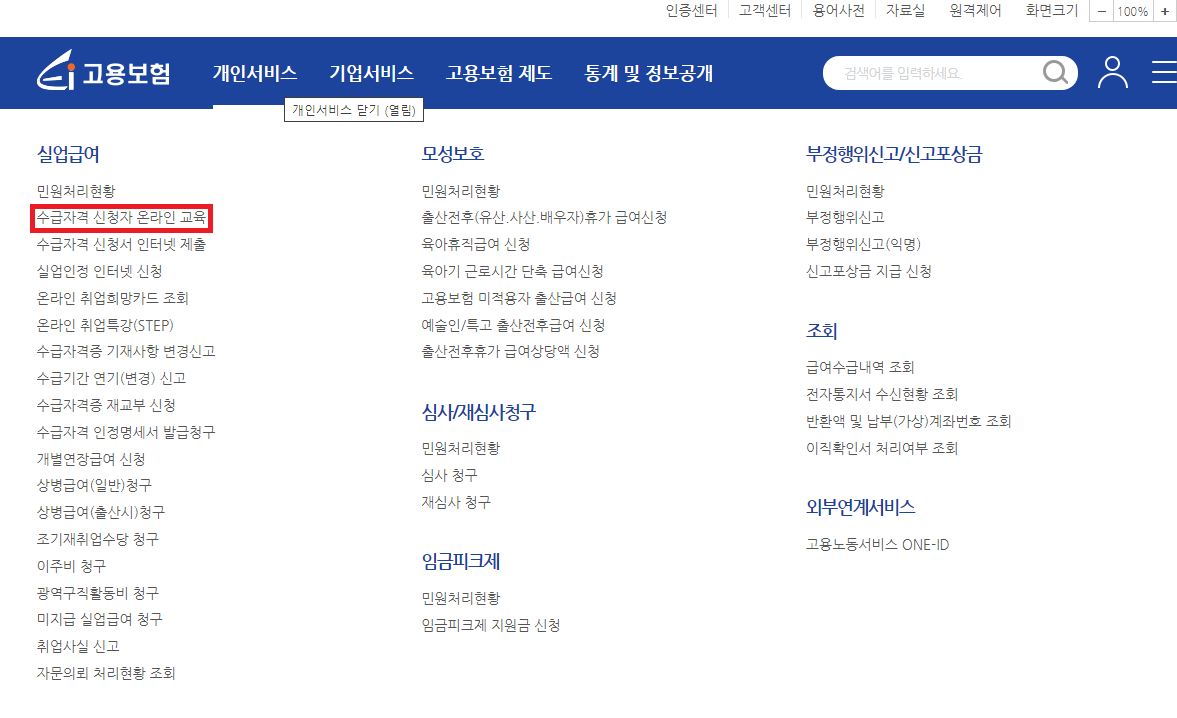 또한 실업급여를 신청하기 전에 수급자격 신청 교육을 이수하셔야 하는데요, 수급자격 신청교육은 고용보험 홈페이지에서 수강하실 수 있습니다.