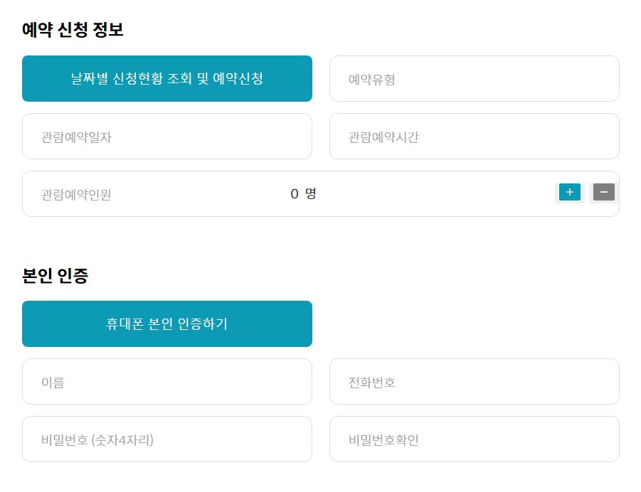 청와대 관람신청을 위해서는 위와 같은 내용을 작성하셔야 하는데요. 생각보다 작성할 내용이 많지 않고 간단합니다. 예약 날짜와 시간, 인원을 선택 후 본인인증만 하면 돼요.