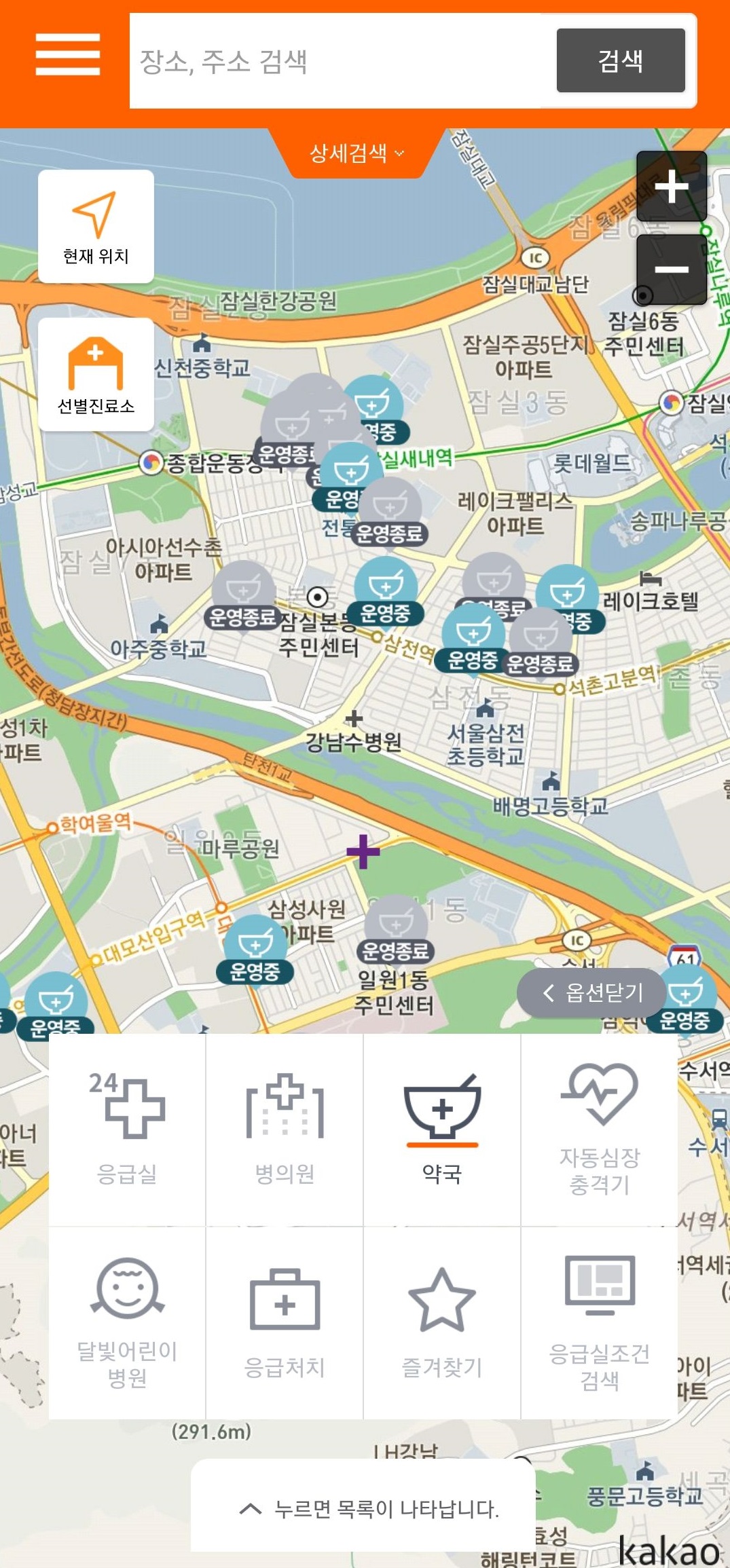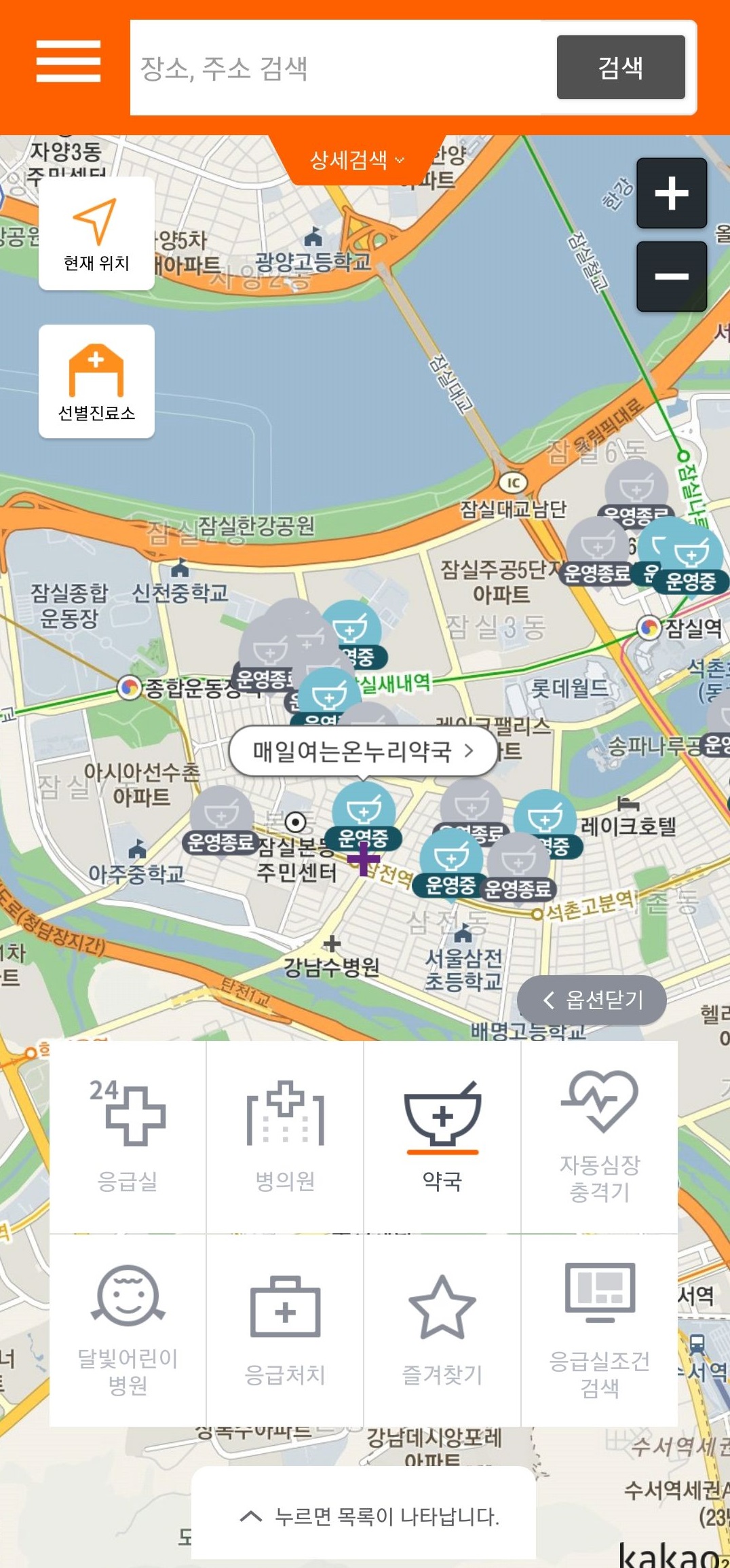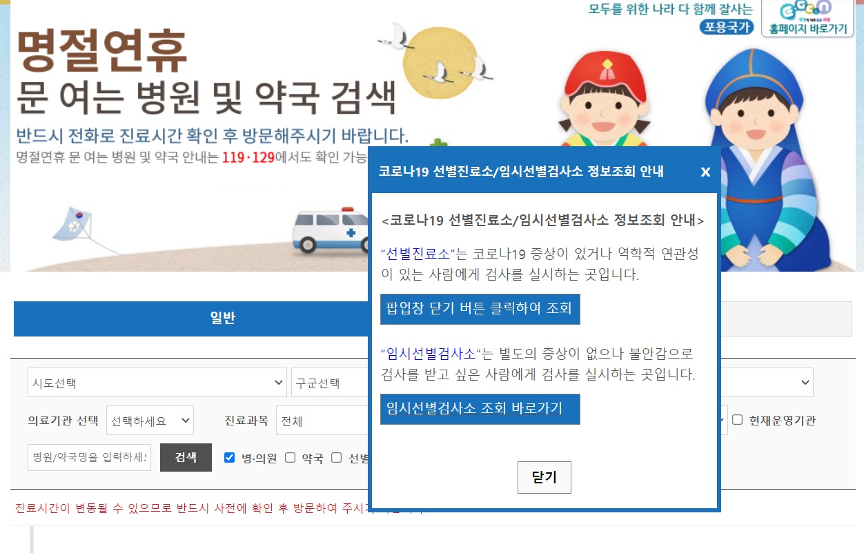 <설연휴 문여는 병원, 약국 검색>